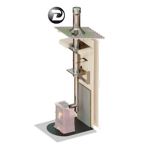 Инструкции, чертежи, документы - Комплект дымохода Дымок, нержсталь, проход через крышу, задний выход