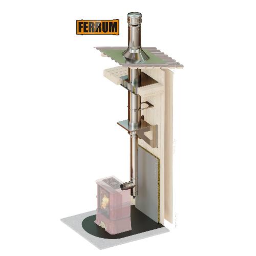 Инструкции, чертежи, документы - Комплект дымохода Феррум, нержсталь, проход через крышу, задний выход