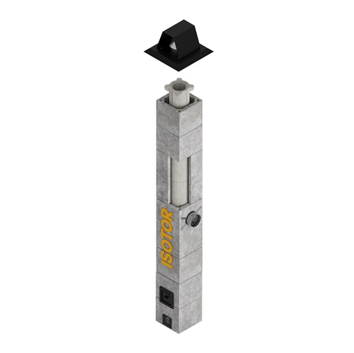 Комплект дымохода Isotor складывается из трёх частей: комплект основания, линейная часть и верхний комплект.