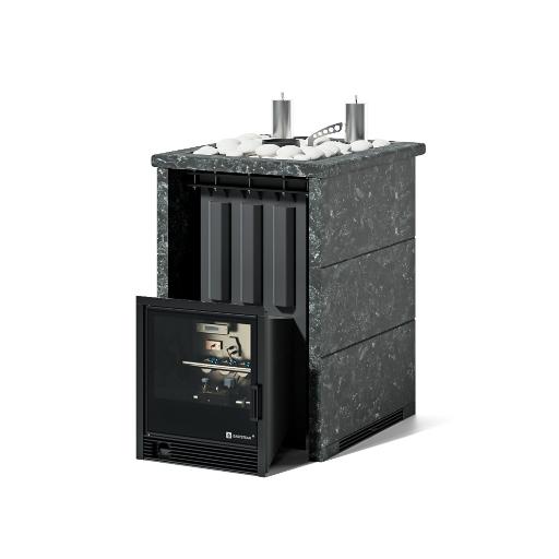 Банная печь ИзиСтим Анапа К с газовой горелкой в трехстороннем кожухе (САБК 40 пироксенит)