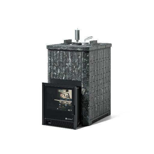 Банная печь Изистим Анапа в наборном полноценном кожухе Пироксенит с закрытым верхом с газовой горелкой (САБК - 40)