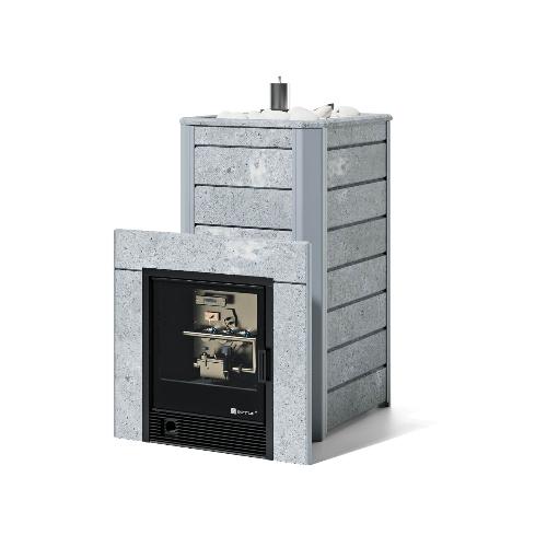 Банная печь ИзиСтим Ялта 40 в кожухе из природного камня с газовой горелкой (САБК-40, талькохлорит)