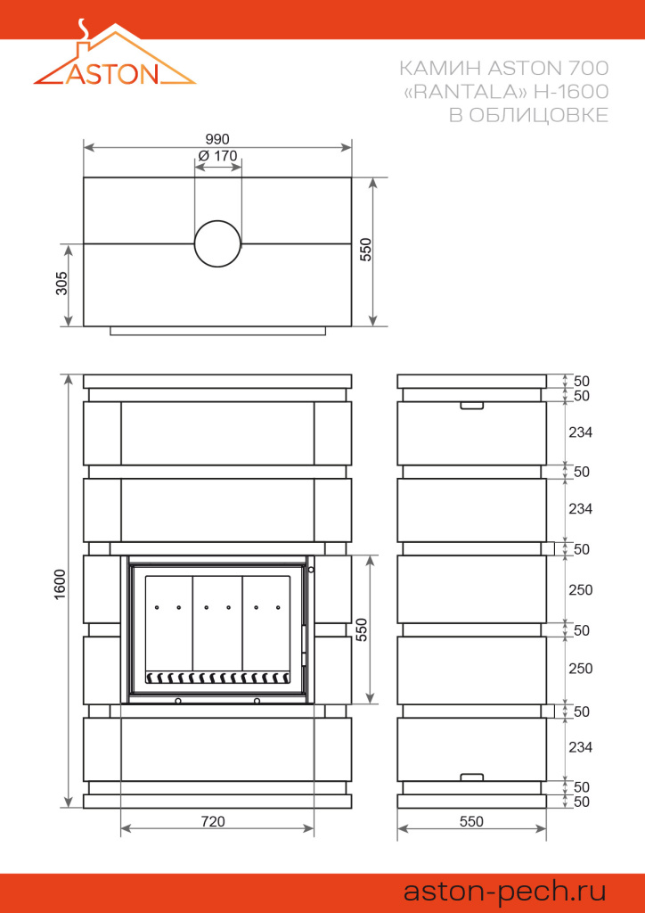 Инструкции, чертежи, документы - Готовый камин Aston 700 Rantala Н-1600 Талькохлорит / Пироксенит