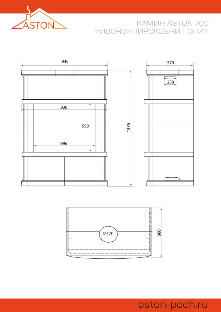 Инструкции, чертежи, документы - Готовый камин Aston 700 Vyborg Н-1276 Пироксенит Элит