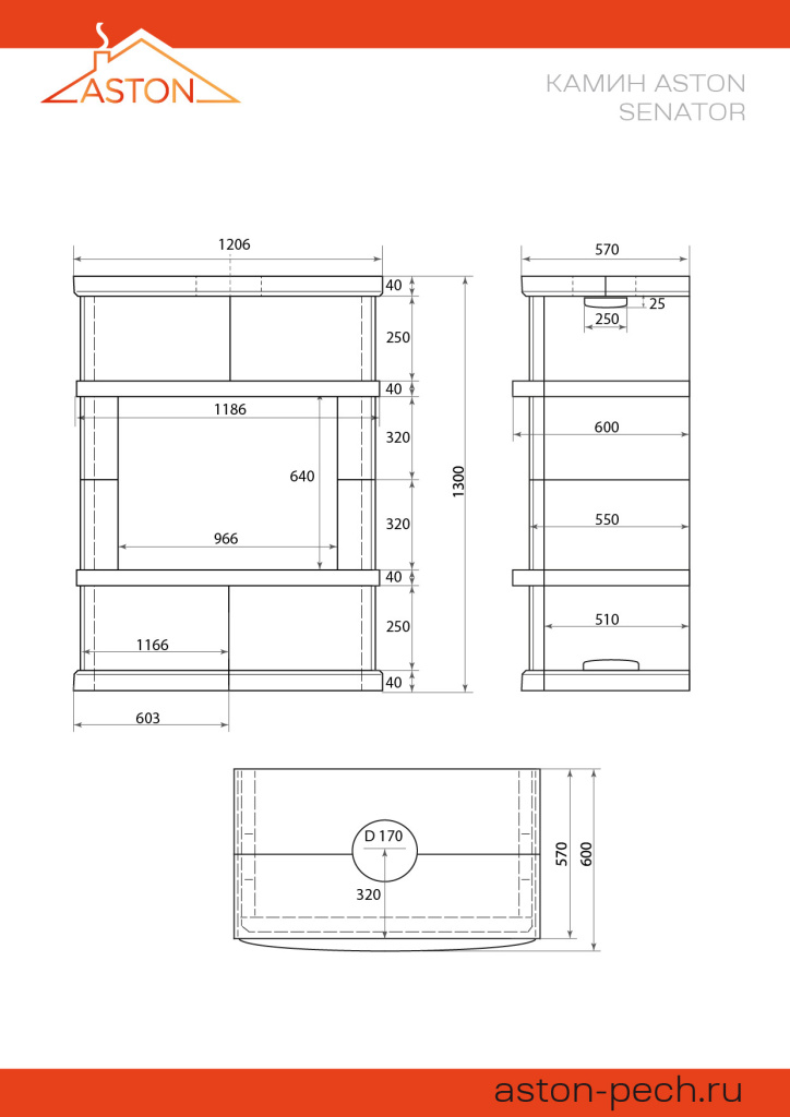 Инструкции, чертежи, документы - Готовый камин Aston Senator Vyborg Н-1300 Талькохлорит