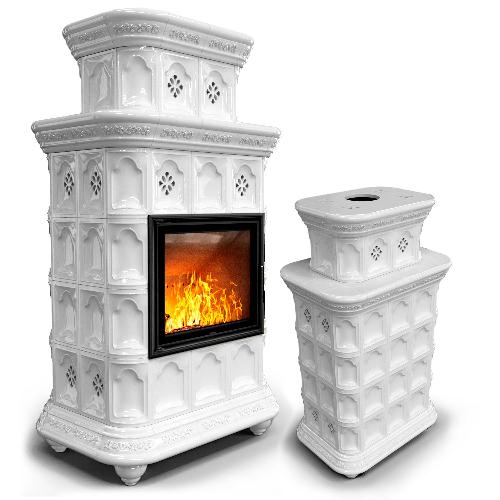 Готовый камин КимрПечь Истра двухъярусный центральный с топкой Астов МЛ 700 (белый)