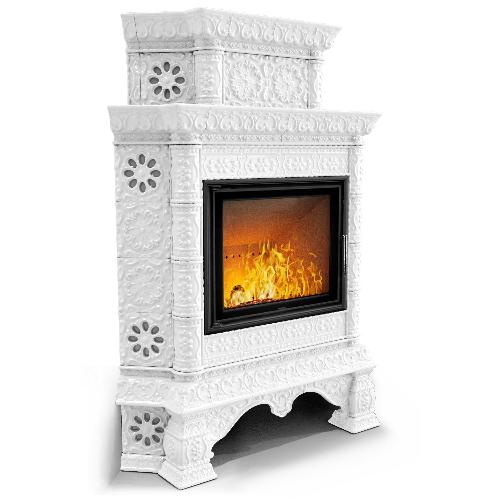 Готовый камин КимрПечь Кострома двухъярусный угловой с топкой Астов МЛ 700 (белый)