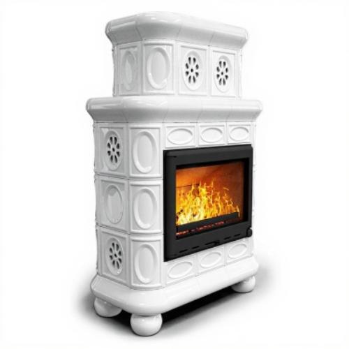 Готовый камин КимрПечь Медальон двухъярусный пристенный с топкой Астов К7454 (белый)