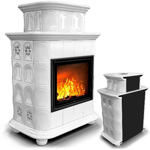 Готовый камин КимрПечь Прованс двухъярусный пристенный с топкой Астов МЛ 700 (белый)