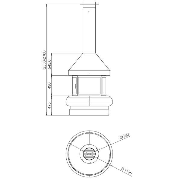 - Диаметр дымохода, мм 300