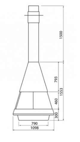 Корпус камина выполнен из жаропрочной и качественной стали, обеспечивая надежность и долговечность. Металлический кожух дымохода регулируется по высоте, что позволяет легко адаптировать его к особенностям вашего помещения.