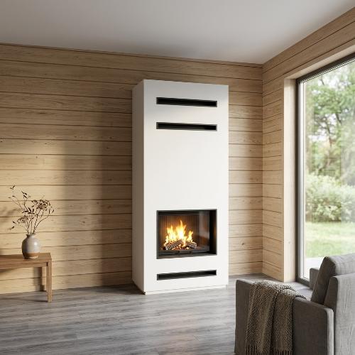 Это стильное и безопасное решение для интерьера — камин с топкой и облицовкой из негорючего материала на основе силикатов кальция. Прочная конструкция обеспечивает высокий уровень пожарной безопасности, а внешняя отделка из современных финишных материалов придаёт коробу эстетичный вид. Возможность окраски в любой цвет из палитры позволяет идеально вписать камин в любой дизайнерский проект — от классики до урбанистического лофта.Состав комплекта