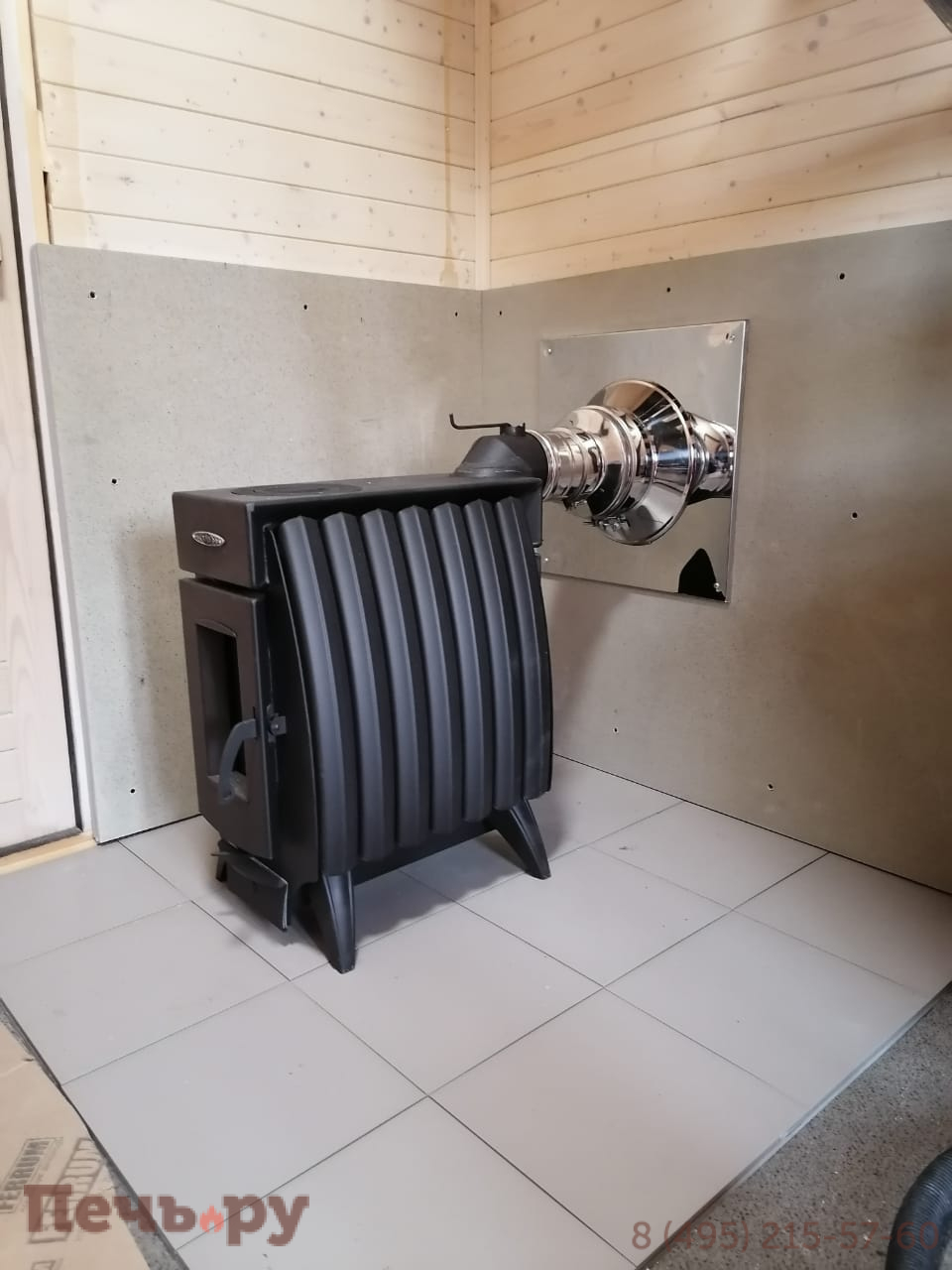 По умолчанию печь имеет верхнее подключение дымохода. При заднем подключении может понадобиться верхняя заглушка к печи. Приобретается отдельно.