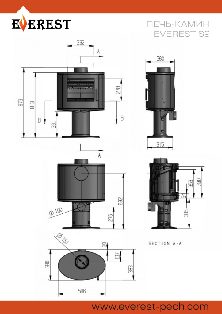 Инструкции, чертежи, документы - Печь-камин Везувий Everest S9