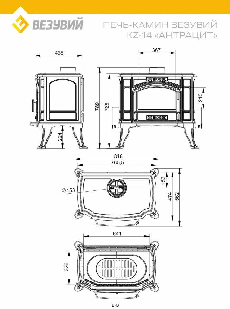 Инструкции, чертежи, документы - Печь-камин Везувий KZ-14 S Антрацит