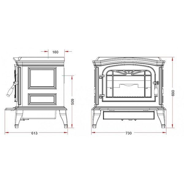 По умолчанию печь имеет верхнее подключение дымохода. При заднем подключении может понадобиться верхняя заглушка к печи. Приобретается отдельно.