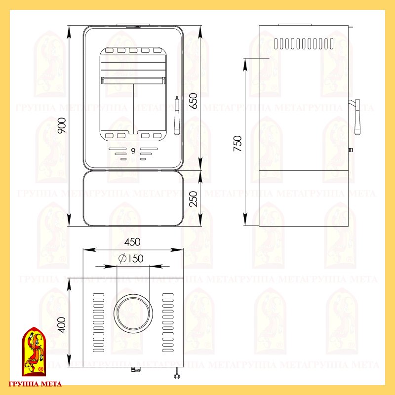 - Диаметр дымохода, мм 150