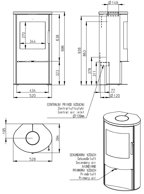 - Диаметр дымохода, мм 150