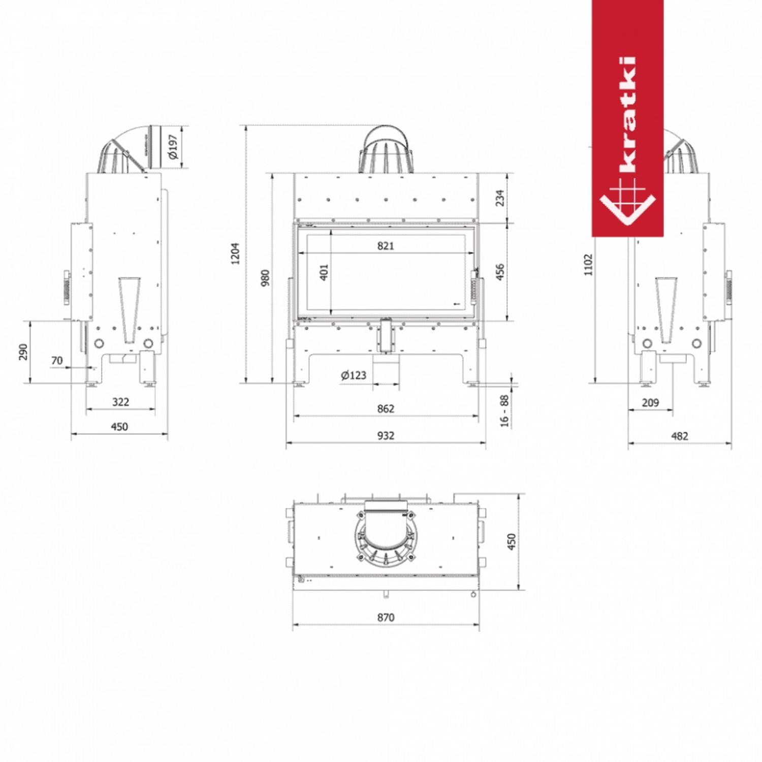 Инструкции, чертежи, документы - Каминная топка Kratki Pro Floki/L