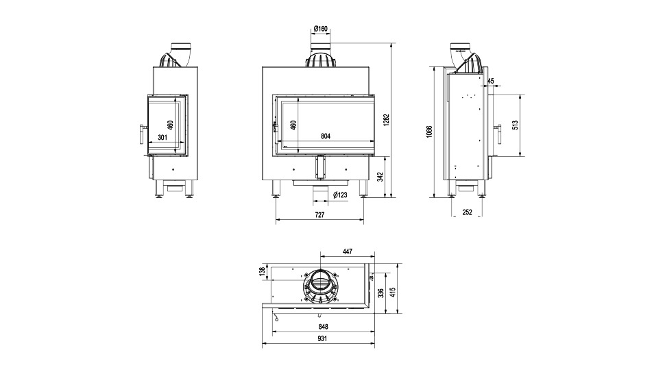 Инструкции, чертежи, документы - Каминная топка Kratki Pro Lucy/14/Slim/P/BS, Г-образное стекло справа