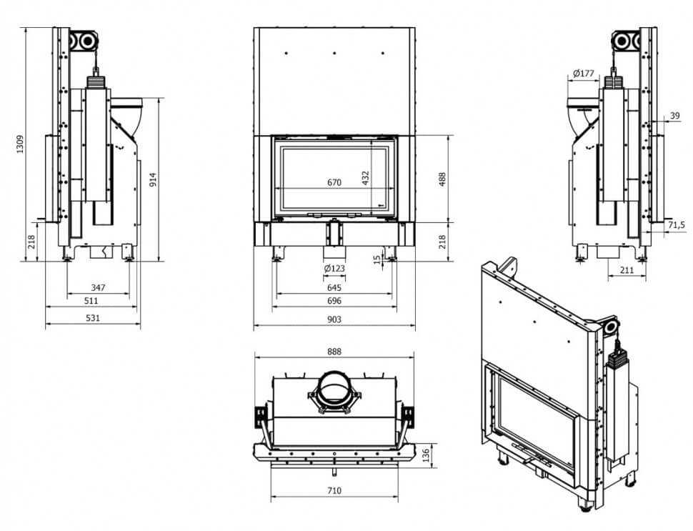 Каминная топка Kratki Zibi G Eco гильотина (белая футеровка)