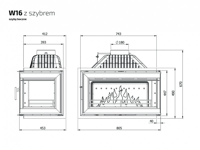 Инструкции, чертежи, документы - Каминная чугунная топка Kaw-Met W16 14,7кВт PB