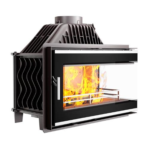Еще одной отличительной особенностью каминных топок Kawmet является наличие встроенной шиберной заслонки с блокиратором дверцы.