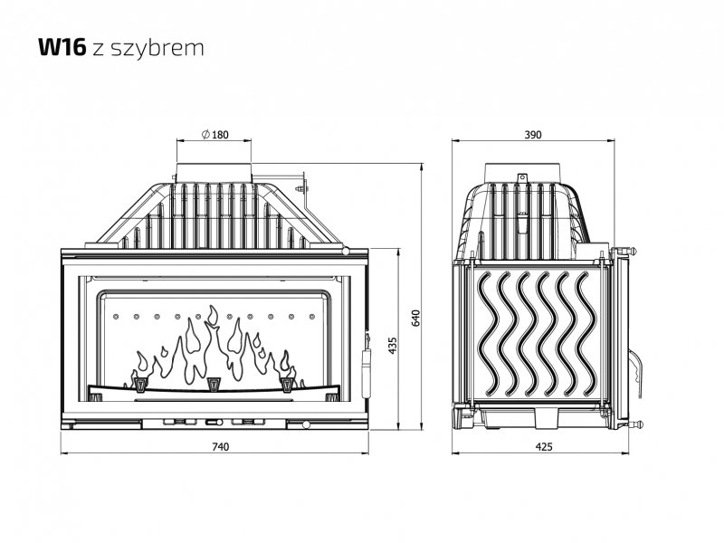 Инструкции, чертежи, документы - Каминная чугунная топка Kaw-Met W16 14,7кВт