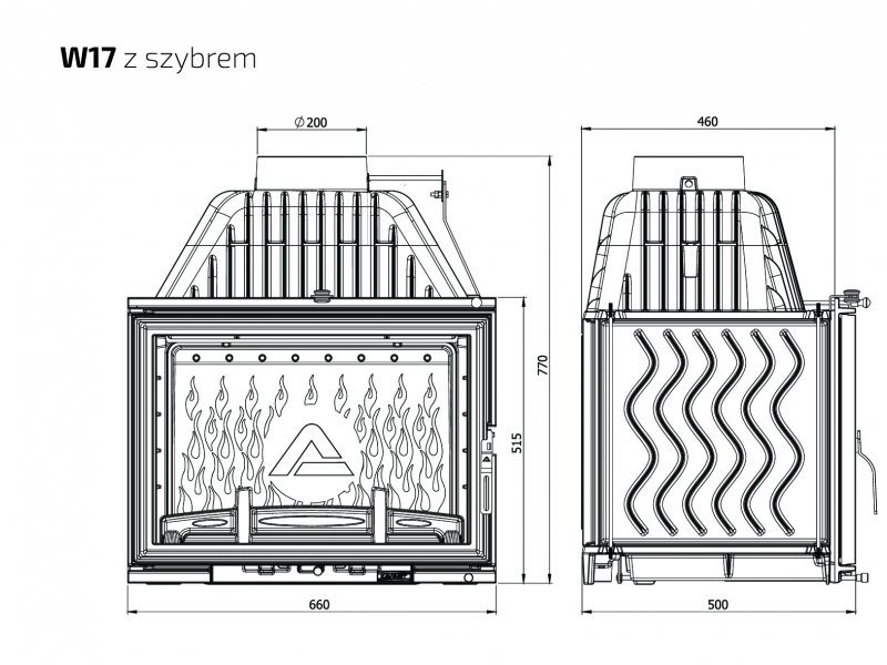 Инструкции, чертежи, документы - Каминная чугунная топка Kaw-Met W17 16 кВт