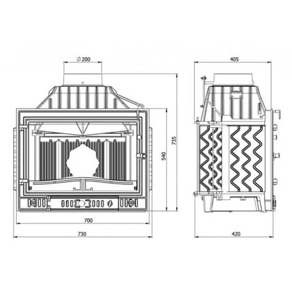 Для защиты корпуса изделия в конструкции топочной камеры так же предусмотрена двойная задняя стенка.