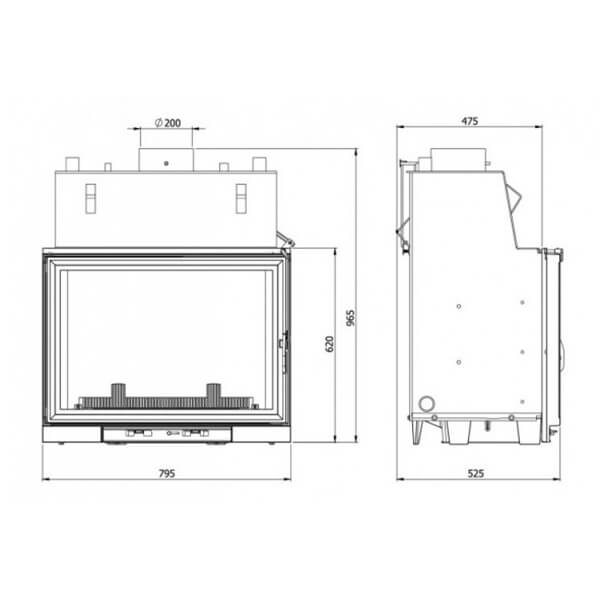 Еще одной отличительной особенностью каминных топок Kawmet является наличие встроенной шиберной заслонки с блокиратором дверцы.